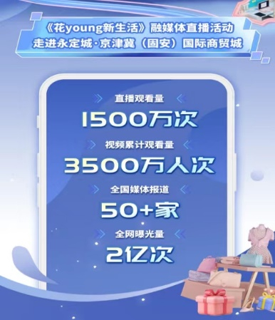 2022年8月18日,北京中视钥北文化传播有限公司联合中央广播电视总台央视频共同策划了《花young新生活》融媒体直播活动,成功打造了继《这young的夏天》《周末新young》等现象级直播节目之后,又一个融媒体直播样板类栏目。总台主持人撒贝宁、马凡舒以互动直播形式走进固安国际商贸城,探寻秋季最时尚潮流的时装款式,通过探店体验、服装搭配、线上抽奖、时装展示等方式,与商户、客户、用户共同解锁服装时尚新潮流。