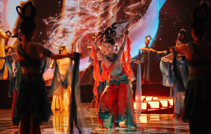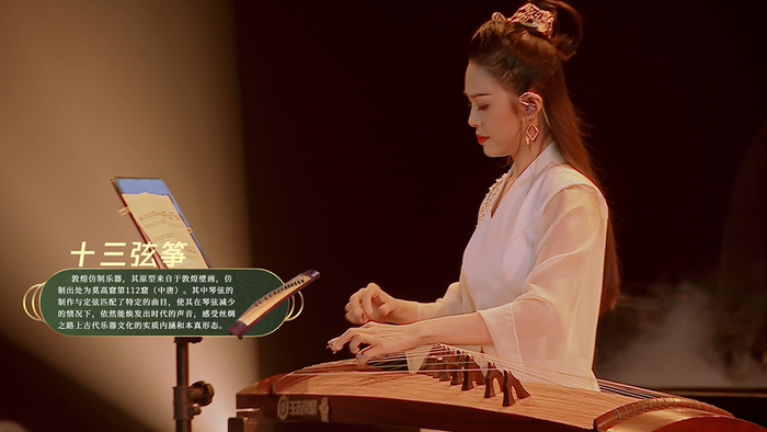 在此前6月27日的云歌会视频中,节目组还特意标注及给予镜头特写的是,五位青年演奏家演奏的乐器,是仿制于敦煌莫高窟壁画之中,分别是创建于隋代第420窟中的五弦直颈细腰琵琶,初唐第220窟中的方响,中唐时期形成的敦煌第112窟中的十三弦筝,以及来自西夏时期的敦煌榆林窟第10窟的卷首奚琴。