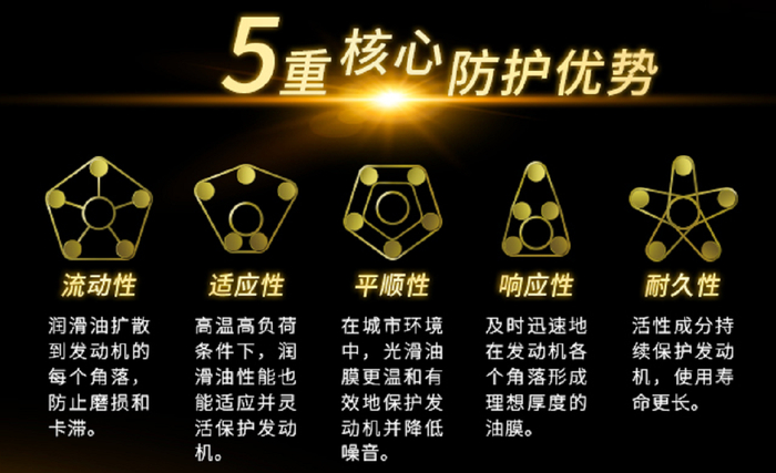 例如上文中提到的IFG5,实际上就是出光机油契合低粘度日系发动机的一款全合成发动机油,采用了进口原材料与出光Nano核心技术,可减少摩擦、降低功率损耗,提高发动机性能,保障加速动力。其次,钼护技术加持,在金属表面形成强效保护层,为发动机提供更高效的保护。而且IFG 5在流动性、适应性、平顺性、响应性和耐久性方面提供了五大防护技术,根据驾驶条件不同,五大优势以不同方式组合,充分发挥动能,可在各种驾驶环境中保护汽车发动机。