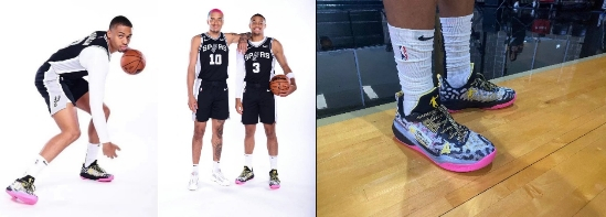 马刺发布的新赛季定妆照中,新老大KJ赚足了眼球,亮眼粉色大底+炫酷金色鞋带。