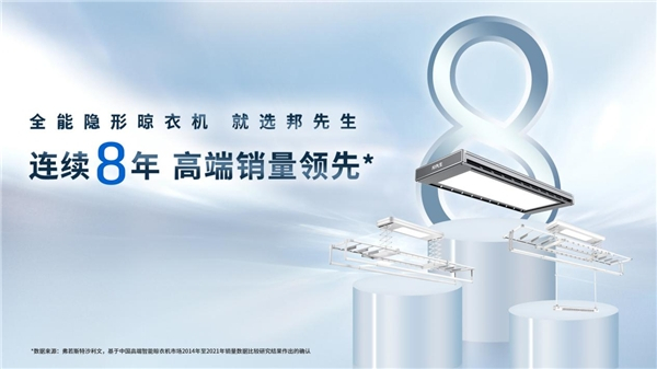 邦先生全面引领高端隐形晾衣机市场,连续8年 高端销量领先
