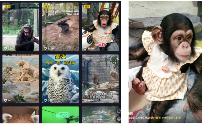 北京野生动物园抖音号每天更新1~2条短视频,通过展示动物的日常来促活账号。为实现进一步的经营,官方还自建团队进行抖音号日常的视频更新,让最了解动物的工作人员负责视频的拍摄,以真实和原生的内容最大程度增加了粉丝和品牌的粘性,成功打造了网红猩猩“瑞莉”、“珂伊”、“欧慨”系列视频。
