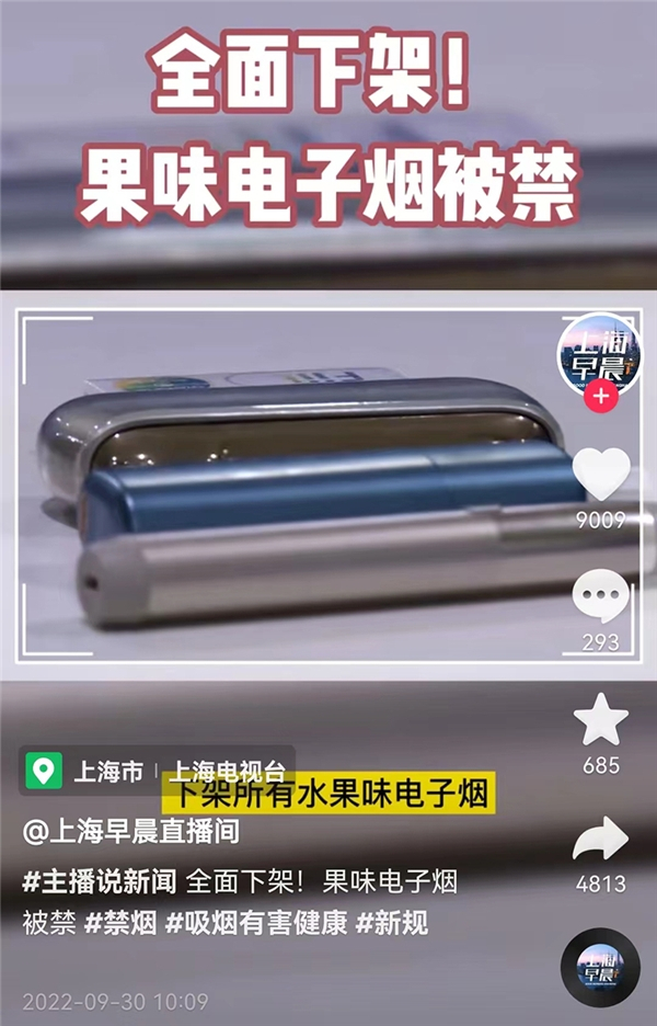 10月1日,《电子烟强制性国家标准》(以下简称《标准》)全面生效,电子烟监管也全面施行,新政要求所有水果口味的电子烟下架,相关烟杆也将具有儿童锁及醒目提示。