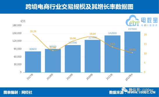 近日,网经社电子商务研究中心发布《上半年跨境电商市场数据报告》(以下简称“报告”)。报告显示,2022上半年中国跨境电商市场规模达7.1万亿元,预计2022年市场规模将达15.7万亿元。