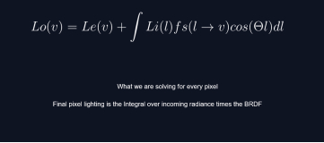 在渲染领域,所有全局照明方法(Global Illumination, 简称GI)的理论基础(光线追踪,路径追踪等)都在于求解渲染方程。但求解渲染方程往往需要大量的样本数量才能收敛(得到干净无噪点的画面),这在实时渲染中几乎不可能实现。