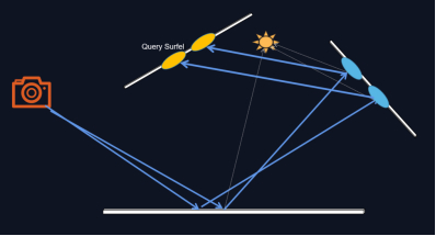 ReSTIR在计算一次反弹计算中产生了良好的效果,但在实时渲染中我们很难将其应用于多次弹射的计算。因此D5的全局光照系统的二次及之后反弹计算中采用了 Surfel Caching 的方案。