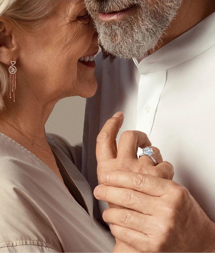 浪漫不分年龄,真爱属于那些付出真心的人。对比西方国家,钻戒在我们国家的发展还算年轻,但是钻戒并不是年轻人的专属。有很多中年的夫妻也会在结婚纪念日给另一半定制一枚钻戒,他们也有着纯粹的初心,那就是想让对方知道,即使时光流逝,她依然是那个唯一的偏爱和例外。而DR也为这些真心相爱,用心经营爱情的夫妻准备了一份不一样的礼物,DR TIMELESS系列时光,定制需要结婚证,并且需要结婚十年以上才可以定制,戒圈的一侧刻着周年数字,从10、15、20……一直到60,而每过5周年,两人都可以在钻戒的另一侧加镶一颗钻石,纪念这个难得的时刻,一直到60周年这个时光钟表就达到圆满,也意味着两人拥有了让人羡慕的爱情,一生爱一人的爱情。