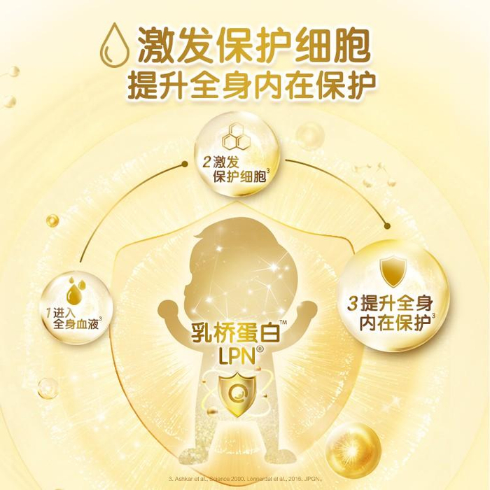 乳桥蛋白LPN是一种关键的天然提升保护力的活性蛋白,早在数年前,合生元就准确地抓住了母乳研究的这一风向标,开始布局乳桥蛋白LPN的科学研究,并且完成了针对中国宝宝的乳桥蛋白LPN临床研究。合生元奶粉蕴含乳桥蛋白LPN,提升宝宝的自我保护力,为宝宝献上天然呵护。