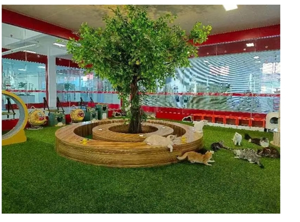 此外,安宠工厂还建立了宠物乐园,以无限接近家庭养宠为理念,主要针对产品进行适口性、耐口性、营养性、功能性饲喂测试。其占地3000㎡,饲养了囊括市面上相对主流的品种猫、狗超200只,无限接近市场比例,采用猫、狗独立分区及在线检测智能化系统,可通过APP实时在线查看饲喂数据;配有环境氨气、温湿度在线检测系统及功能分区,设有隔离观察室、医疗间、洗护间、消毒间、运动场。