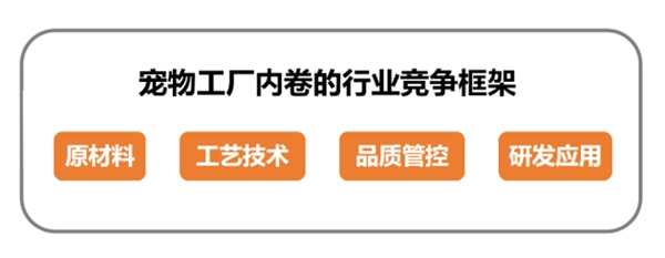 安宠总经理冯质刚分享了一个适用于宠物行业的竞争框架,主要分为四个方向:第一是原材料、第二是工艺技术,第三是品质管控、第四是研发应用。围绕这四个方向,安宠工厂做出了全方位的努力,也是铸就其强大实力的根基。