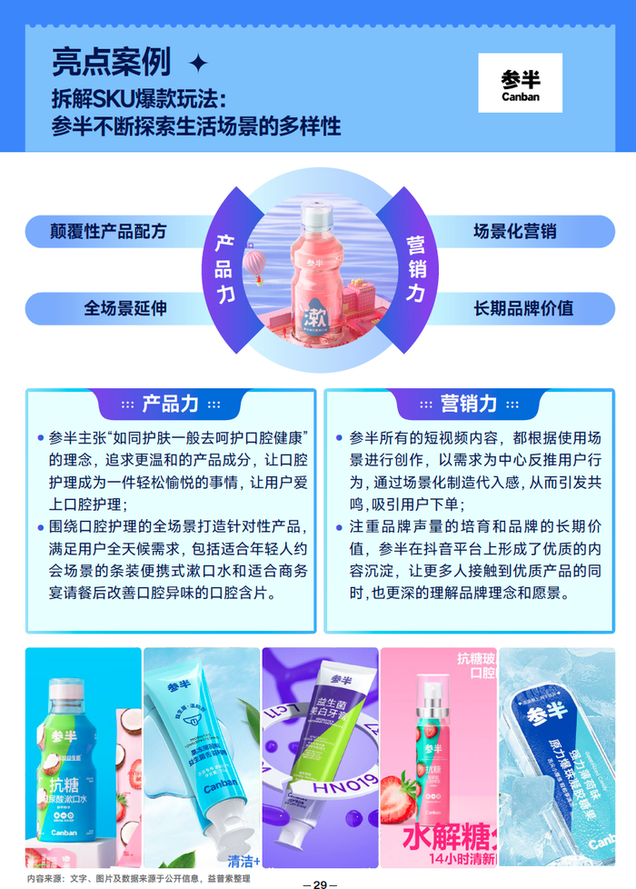 益普索联合巨量算数、算数电商研究院,拆解消费者消费决策旅程中分属于“产品力”与“营销力”的 17 个不同指标,以近年来持续涌现爆品、新品的口腔护理赛道为切入口,推出 《2022 抖音口腔护理行业爆款解码报告》,首次从品类层面下探到单品层面,观察爆款表现,解码爆款的成功模型。