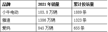 据黑猫投诉显示,截至2022年10月8日,关于小牛电动的累计投诉量为1889条。粗略与销量相比,参照同行,小牛电动的投诉率明显偏高。以黑猫投诉平台为例,针对小牛电动的投诉,主要集中在续航虚标、电池质量、电机质量等方面。其中,中控故障及电池问题的投诉占比最多,普遍反映车辆存在无法定位、中控报故障、双跳自动闪烁、电池虚标、充不上电、部分功能没法使用等问题。