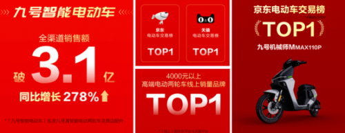 还有直接将小牛电动挑下马的九号,据九号公司2022半年报显示,其智能电动两轮车业务,营收9.3亿元,同比增长81%,在报告期内实现销量30.7万辆,超过了小牛电动。在2022年8月29日,九号公司宣布中国区智能电动两轮车累计实际销售出货量破100万辆。在竞争激烈的电动两轮车领域,九号公司入局仅2年多,就占据了一席之地。同样在2022年的618销量大战中,九号电动智能电动车机械师MMAX系列夺得京东电动车交易榜TOP 1的位置。