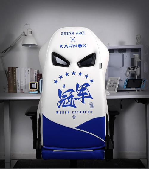 凯诺克斯(KARNOX)X eStarPro 战队联名定制的七冠电竞椅以人体工学为根本,通过独特的设计语言以及极具辨识度的 eStarPro 战队元素(Logo刺绣),让整把椅子极具王者风范。