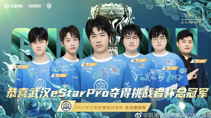 恭喜武汉 eStar Pro 再次夺得王者荣耀2022挑战者杯总冠军!凯诺克斯激情助力,终剑指巅峰!