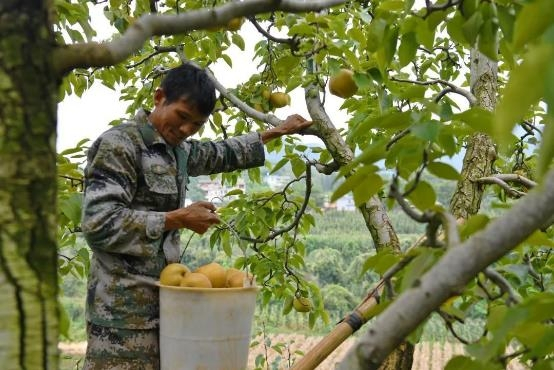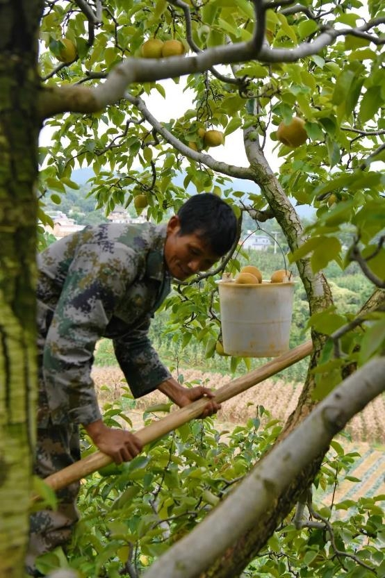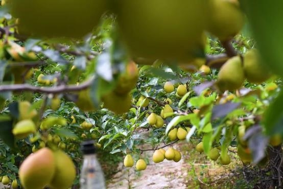 在白泥塘千亩梨园内,果农赵有林正在自家梨园里采摘,他告诉记者,近几年区里给的政策好,还给了专业的技术指导,梨的品质和知名度不断提高,从过去没太多人买,到现在一年比一年卖得好,他自家种梨规模扩大到了70亩,收入也翻了番。