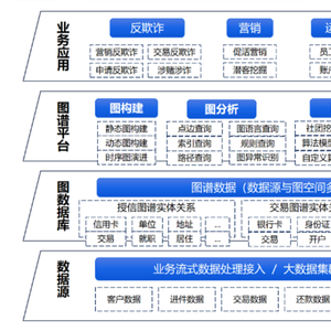 邦盛科技知识图谱通过提供中央级的图谱平台,构建集企业底层数据源介入、图谱数据管理、图谱平台化应用的一体化平台,实现知识抽取、知识融合、知识推理、知识存储与知识应用,助力企业快速完成知识图谱的一站式构建,打造丰富的业务场景应用,挖掘数据价值,赋能企业数字化转型。其中,底层的数据层可以满足不同数据清洗、接入的需求,并支持多种数据通过流式或批式接入,然后在图数据库中进行点边结构映射,继而在图谱平台中完成图构建、图分析、图挖掘、图决策等操作。同时还会集成可视化的操作组件及各类算法,以适应顶层不同业务线的需求,如反欺诈、营销、运管、潜客挖掘、企业担保等。