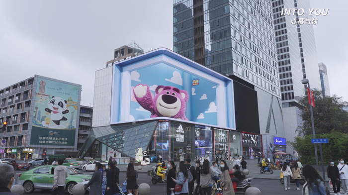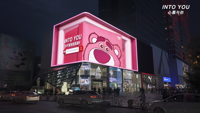 近日,国货品牌INTO YOU心慕与你携手迪士尼皮克斯草莓熊空降成都太古里3D大屏,一时间,成都太古里因为这位软萌来客变得热闹非凡。据了解这是INTO YOU于10月8日至10月14日期间进行的一场特别企划。因这场特别企划, “成都网红3D大屏草莓熊IP打卡”成为了成都秋日最热的打卡地之一。
