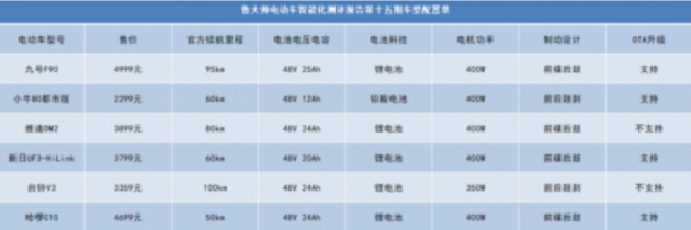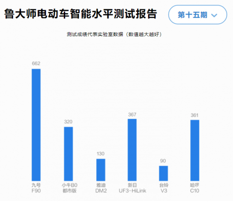 据悉,这次鲁大师第十五期内容包含电动车智能排行,测试的车型都是市面上主流品牌的主流车型,一共有九号电动车F90、小牛B0都市版、雅迪DM2、新日UF3-HiLink、台铃V3及哈啰C10六款车型,测试成绩都是自于鲁大师智慧实验室。