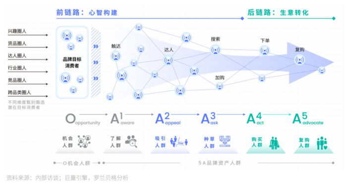 2.利用5A分层经营提升经营效率,根据增长目标测算需要支撑的人群资产数量以及层级结构,指导品牌的人群资产经营策略,推动人群高效流转;