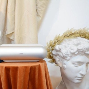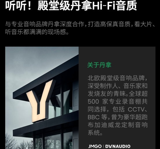 机身一侧有着DYNAUDIO文字显示,在丹拿调音工程师团队的调校下,坚果O1S超短焦投射出极致低音下行至55Hz。左右对称有着两只7W功率喇叭,搭配业界著名Ti公司TAS5805功放芯片,音效表现的确非常出色,在听感方面,低频澎湃强劲,富有弹性,中频温润灵动,高频则精致通透,在听歌的时候会给人一种堪比专业级音响般的震撼感觉。