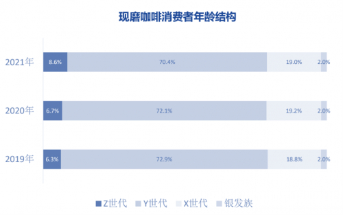 “茶拿铁”价格带定位在10-12元档位,也使得桃园三章更专注于学生党与下沉客群的运营。而据《2022中国咖啡产业发展报告》数据显示,Z世代现磨咖啡消费者正不断壮大,既与桃园三章的目标客群符合,也算提前锁定未来消费“中坚力量”的忠诚度。
