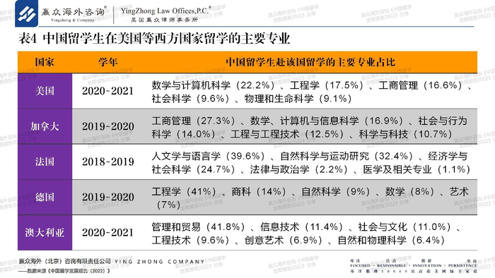 而加拿大和澳大利亚留学人数于2019-2020学年迅速增长,但2020-2021学年也受边境政策影响稍有回落。相反,英国、法国、俄罗斯和德国有所上升,受疫情影响较小。