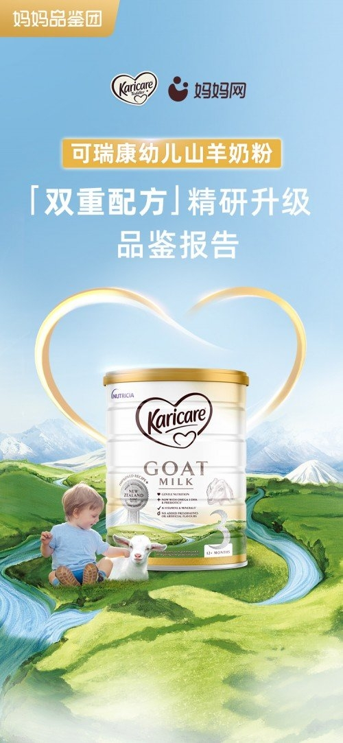 拥有百年历史,素有羊奶粉鼻祖品牌之称的可瑞康Karicare,其山羊奶粉奶源来自纯净的新西兰,奶香味浓郁无膻腥味,极受国内妈妈的青睐。除了奶源优势,可瑞康山羊奶粉也拥有配方优势,并且依托充足的婴配粉研发经验,可瑞康也在围绕宝宝喂养需求持续进行产品焕新升级。