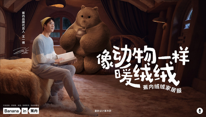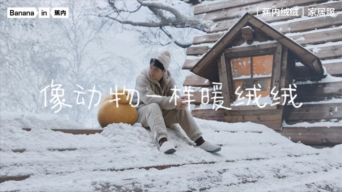 10月14日,新锐国货品牌Bananain蕉内以一则颇具冬日童话色彩的全新广告大片——《像动物一样暖绒绒》霸屏各大APP,官宣绒绒家居服的升级回归。