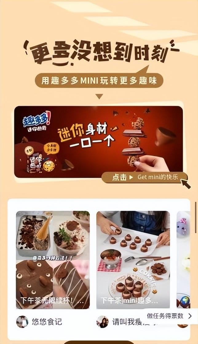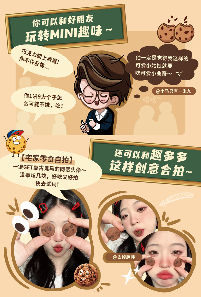 而现在,趣多多推出了mini版!可爱妙趣的mini尺寸、浓缩的美味口感让趣多多mini成为新晋的灵感美食。此次趣多多更是选择牵手小红书,入驻同样灵感爆棚的「没想到事务所」,共同发起「没想到的趣多多」活动,邀请用户一起玩出花样,发现趣多多小身材里蕴含的大灵感!