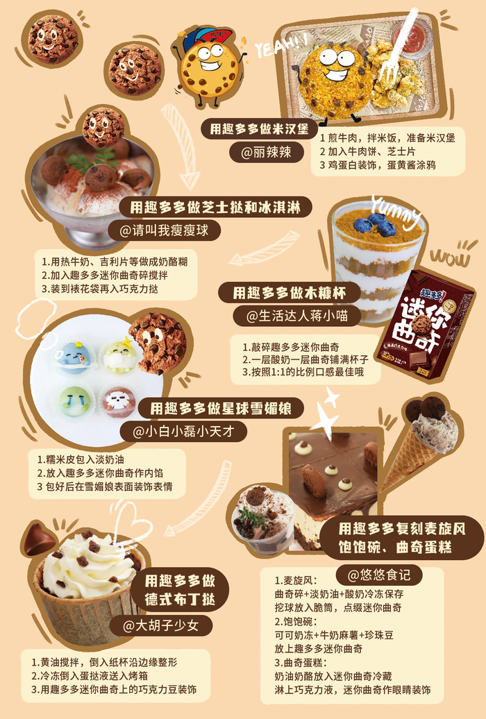 木薯杯、雪媚娘、芝士挞、趣多多芝士牛肉汉堡……@悠悠食记、@生活达人蒋小喵等博主脑洞大开的趣多多菜谱获得数千点赞,粉丝们纷纷在评论区下留言:“给我整饿了”、“不建议你吃这么好,因为我眼红”、“这样的汉堡我一口一个”……通过展示多种创意吃法和使用场景,趣多多mini借博主矩阵影响力在站内广泛传播。