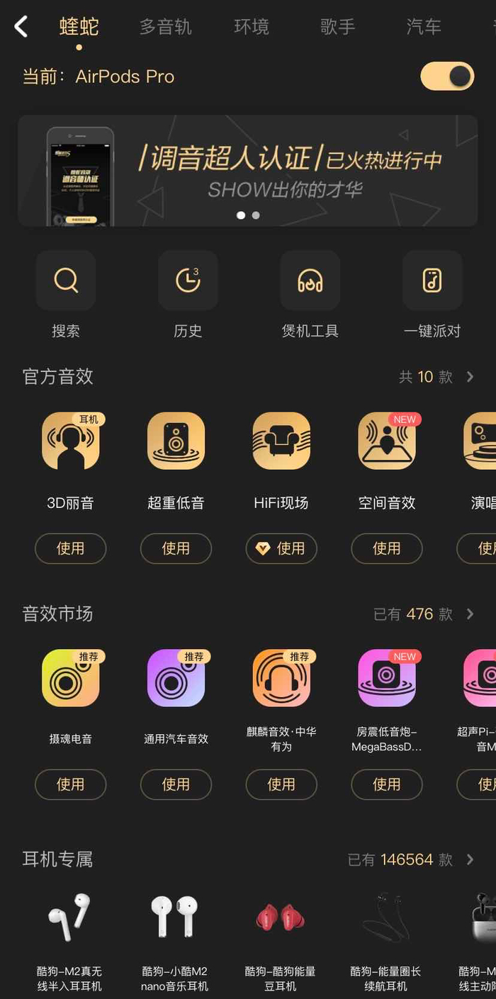 随着硬件技术的完善和曲库的日益扩大,乐迷对于“音效”这一词汇不再陌生。对于酷狗音乐来说,让用户的“音效”体验感越来越好是非常重要的事情,酷狗蝰蛇音效通过九年的不间断努力,让改变音乐听感变得简单有效,并满足多场景下不同音乐听众的需求,截至目前,蝰蛇音效上架了超12万款音效,积累多达4.7亿庞大用户量,拥有超1500调音师入驻。