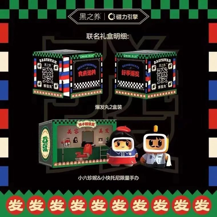 品牌与IP,品牌与品牌,品牌与明星,想要破圈,就要跨界,这是营销的化学反应,更是传播的话题效应。 此前,「黑之养」携手快手·磁力引擎联合发布了【好事爆发】礼盒,联名礼盒精准洞察当下年轻人期望暴富好运的心理,以「發」为创意原点,将黑之养无糖黑芝麻丸与快手磁力引擎 IP 巧妙结合,并联动涵盖了内容、直播、话题与手办商城,最终从内容端到直播实现销量转化。