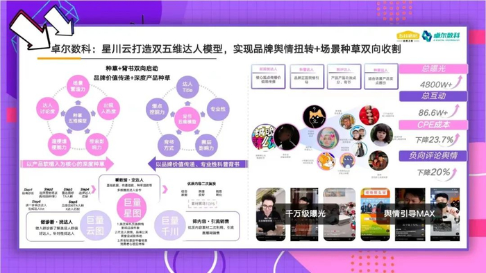 扬帆破浪正当时!作为五谷磨房在小红书平台、抖音平台的长期合作伙伴,基于大量的实战经验和行业领先的方法论模型,在大促期间,卓尔数科携手五谷磨房,业内首创了双五维达人模型,通过打通星川云一体,以产品植入为核心深度种草,并以品牌价值传递、专业性科普为背书,最终实现了品牌舆情扭转+场景中草双向收割! 未来,卓尔数科将再接再厉,共筑品牌新势能!