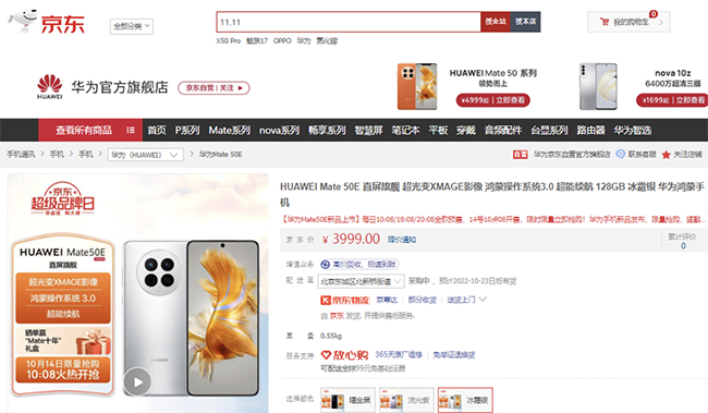 3999元起!华为Mate 50E开售 京东入手华为手机可享多重超值好礼