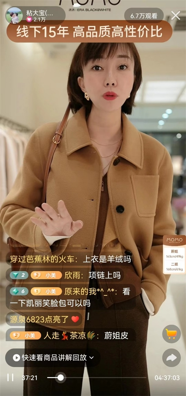 “新客是源源不断的,将新客转为老客才是长效增长的重点。”为促进粉丝留存,陈蔚会不断通过视频评论、直播互动、粉丝群沟通、售后反馈等各渠道,洞察用户需求,使MOMO ERA的新品不断满足用户的喜好。