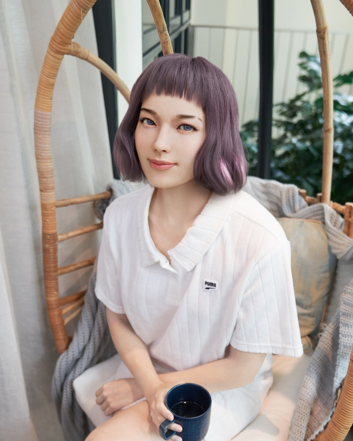 Rae杏仁猫眼、断眉、纽扣鼻、丰唇、粉紫色齐颌微卷短发,身体灵活矫健,既有女性的柔软身段,又不乏运动热爱者的健康。一眼看去,Rae与国内的虚拟人形成鲜明的区别,她的外貌不局限于中国审美,不走眉眼精细的颜值,而注重阳光、帅气、亲和感的气质打造,耐端详,又令人过目难忘。
