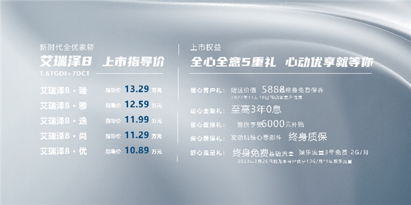 售价10.89-13.29万元,艾瑞泽8全优驾到,与美好共生