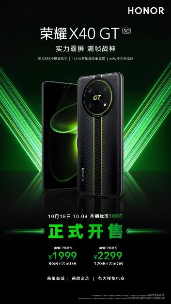 性能跃级标杆荣耀X40 GT正式首销,到手价仅1999元起