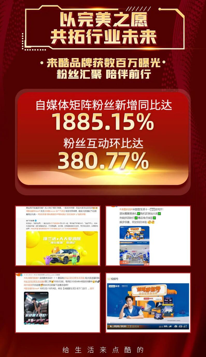 为祖国庆生,来酷科技十一期间多重数据翻倍增长
