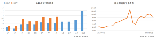 2021年我国新能源商用车的渗透率是4.2%,今年1-8月这个数字已经达到7.7%。在城配领域,8月新能源物流车占比已经达到9.3%左右,按照十四五规划,到2025年城市物流配送新能源汽车比例将提高到20%,整个行业正进入倍增式发展的快车道。