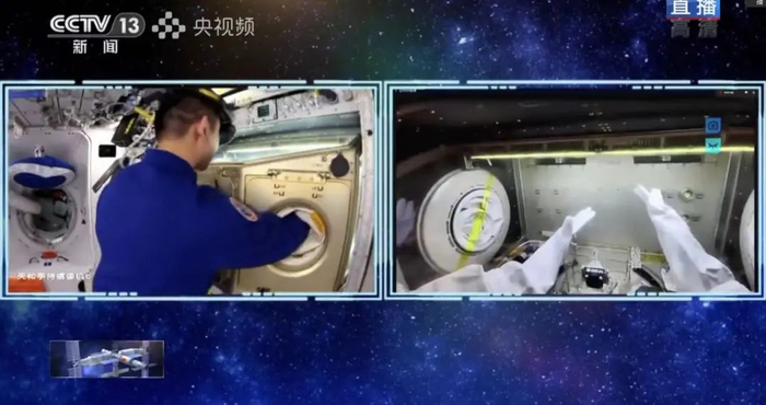 10月12日,央视 13套进行“ 天宫课堂 ”空间站直播,航天员陈冬使用MR 设备通过语音交互操控,一方面打开可视化实验步骤指导,另一方面以第一视角向全国观众直播展示实验过程,同时拍照将实验结果照片传输至地面专家,实现天地协同,提高科研效率。
