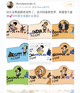 2021年国庆期间,当网友创作的阿喜全身像被偶然搬运至微博引发关注时,喜茶官方便通过自嘲式的巧妙回应,令话题登上热搜,持续引爆全网。