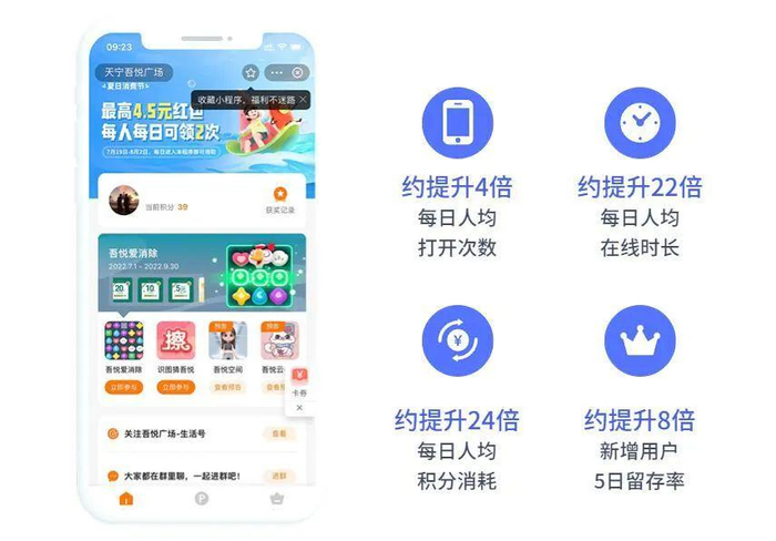 其实在摩境空间上线前,通过2周模块化游戏的试跑,天宁吾悦的用户留存和积分消耗情况就有了明显提升。
