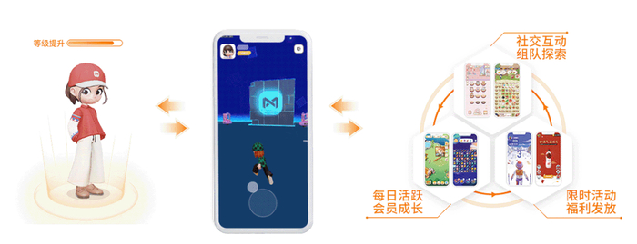 它融合了虚拟世界、积分权益、模块化互动游戏三大核心要素,通过虚实映射、社交互动,数字藏品等内容,在提升用户粘性和活跃度的同时,持续为品牌私域聚集数据流量,打造高价值、高转化、高忠诚的营销阵地。