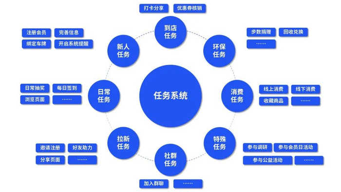 摩境空间可根据品牌实际运营需求,配置丰富的任务系统,有策略地激励和驱动用户,形成良性循环。