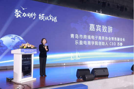 乐盈电商学院作为本次活动的承办方,创始人苏静女士上台为大会致辞,站在为卖家提供服务的角度,苏静女士介绍了乐盈电商学院为卖家量身打造的团队孵化等业务,能够一对一帮助企业顺利开展跨境电商及亚马逊的业务,在被评为2022年度山东省级跨境电商孵化机构试点单位后,乐盈电商学院也将为卖家引进更多的优质跨境电商资源,提供落地的跨境电商服务。