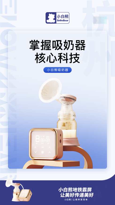 什么才是适合当下的育儿方式?怎样给宝宝一个好的开始?面对这一烦恼焦虑,从小白熊选择电动吸奶器覆盖杭州地铁广告不难看出 ,让宝妈轻松母乳喂养,守护宝妈美丽心情,无疑为“科学化、精致化育儿”指明了方向。