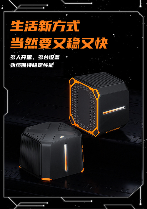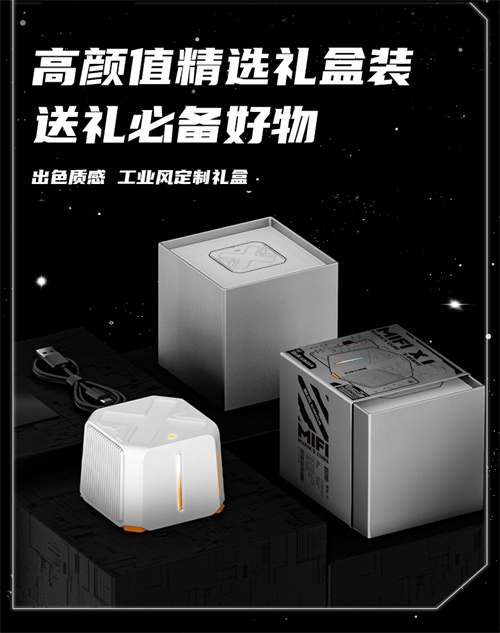此次X系列带给用户巨大的视觉冲击,它突破以往WiFi设备的刻板造型,以全新的形态向用户展现了新讯在产品上的创新能力。X系列的特征是底部四个新讯橙的点缀,化用了符号X,整体酷似外星机器人。顶部的X造型与底部X遥相呼应,构成“XINXUN”的首字母。正面装有呼吸灯,流光式渐变,科技感、氛围感十足。在产品包装上,新讯也下足了功夫,采用了礼品式包装,让X1更具价值感。