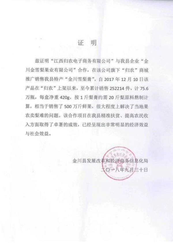 归农的介入,为何能拓宽金川雪梨膏的销路?关键在于模式创新。“我们走的是内容+社群电商模式。”归农电商创始人蒋宪彬介绍,归农通过实地考察调研,将优质产品的生产知识、历史故事、人文情怀等所有真实内容,包括实地“鉴证”的活动现场,制作成“有料有趣有爱”的图片视频文字等内容,在移动社交平台上广泛传播,丰富透明的信息,会让人们因阅读而打动,而喜欢。